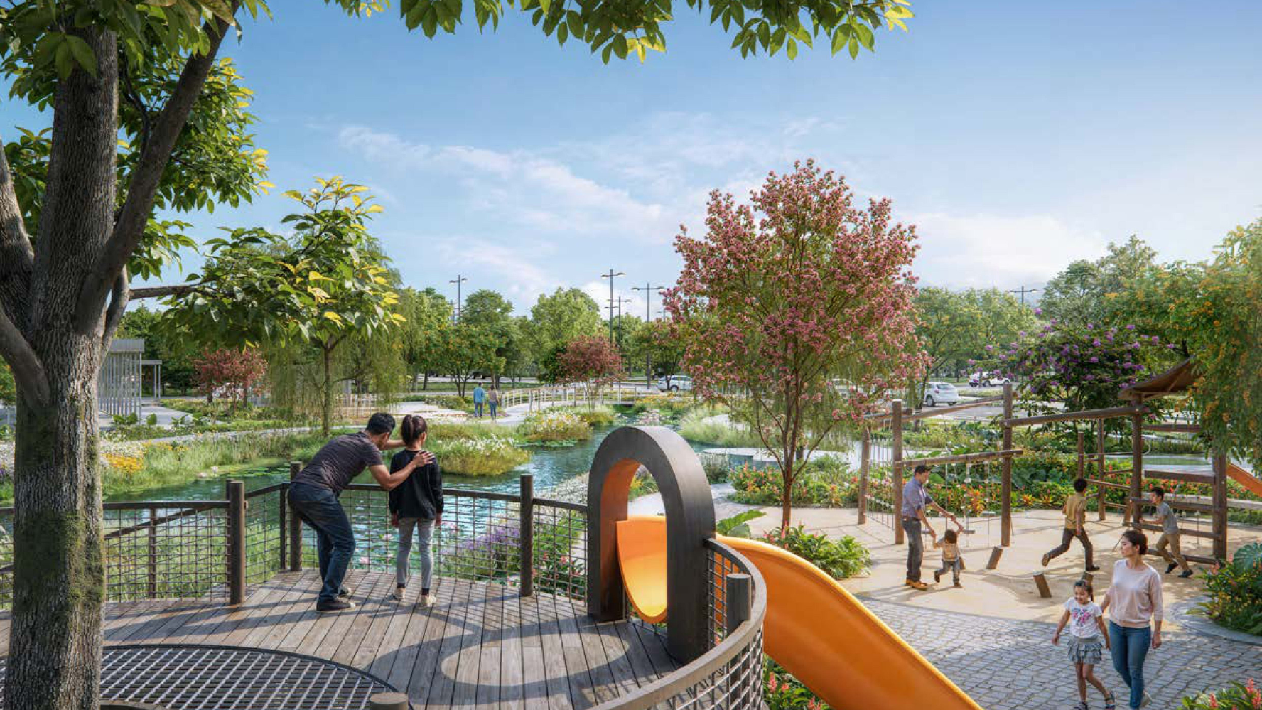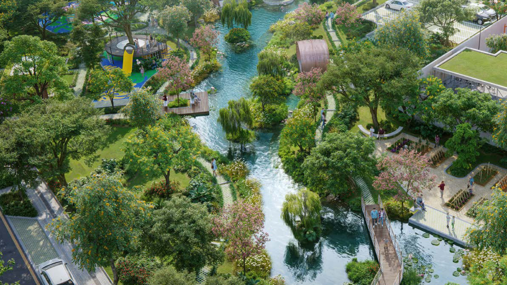 Điểm nhấn trong quy hoạch chính là hệ thống công viên cây xanh bao phủ toàn khu, tạo nên bầu không khí mát mẻ, dễ chịu suốt cả năm.